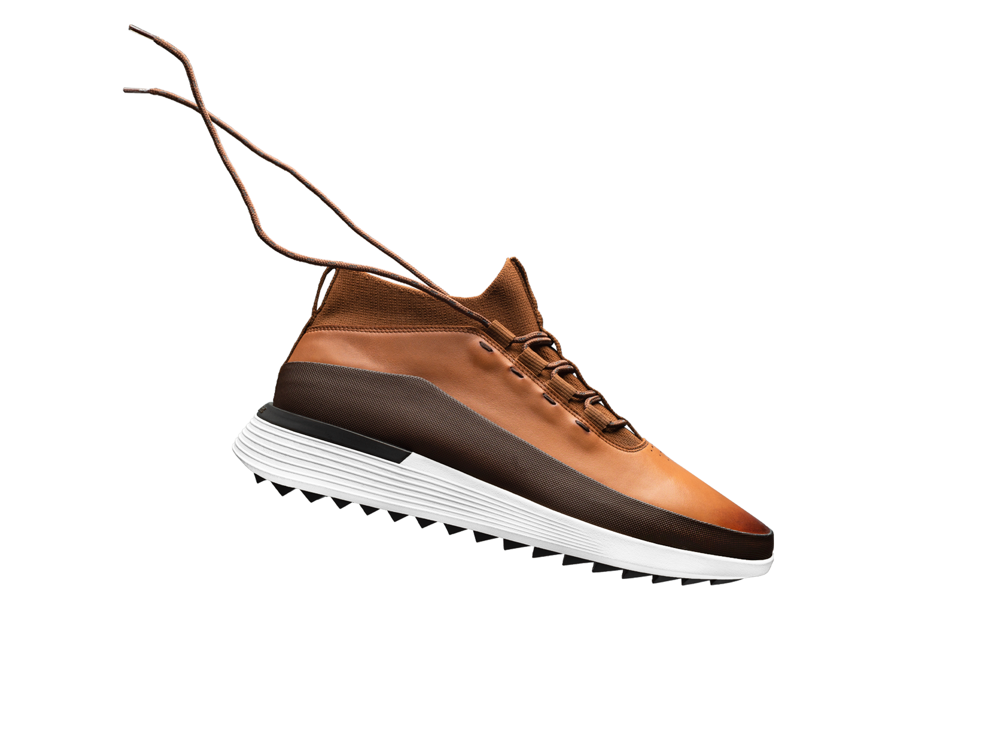 Campaign Narrative: "Edgy by design, the Crossover™ Mid Weatherized is a shoe with some edge. Maybe that’s how it’s so comfortable in its own skin (Italian crazy horse leather and waterproof mudguard) even when conditions aren’t. Don’t get us wrong, it’ll show its teeth if pushed the wrong way - but it isn’t caught on its heels often. Trailblazers tend to keep their head down and chin up, after all."